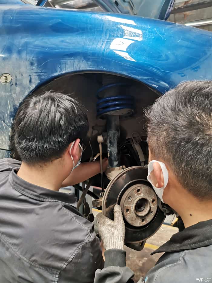 车子是前一天中午送去修理厂的,第二天周末一早就赶去修理厂,前面的减震和弹簧在昨天就已经搞好了,准备更换扭力杆