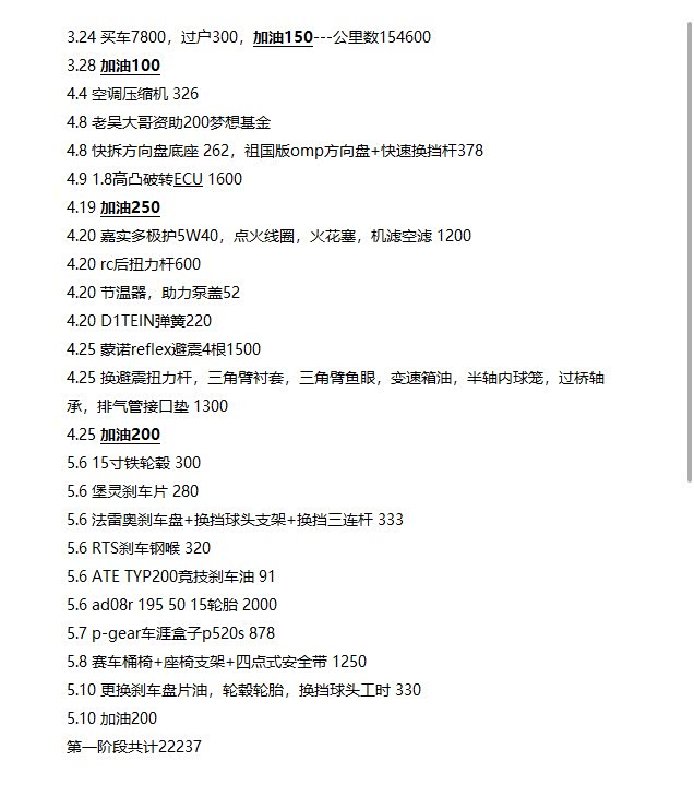 进排气目前没有动,准备后面上了1.8高凸后再更换头段和中段,尾段主要是影响声浪对动力的影响比较小。本人虽然改车但是对那些炸街党也是深恶痛绝,当然为了极致的赛道性能改尾段也无可厚非,但是你改了个非常炸的排气还在大半夜的出去炸街,那你就只会像一只过街老鼠人人喊打。
