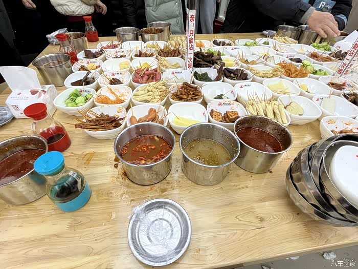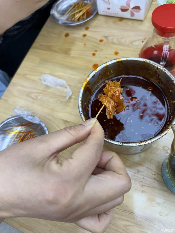 特色冷沾沾吃了,很多人围在一个大桌子上,菜品用牙签串好,然后各类蘸汁,只能蘸一次哦