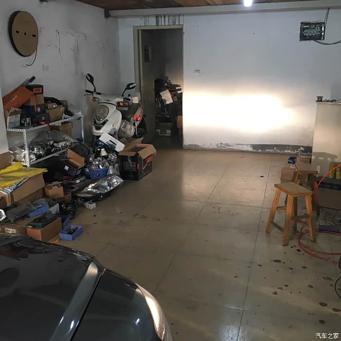 进入改装车间,掀起机盖,先看看原车的卤素灯效果,近距离看还觉得可以,到了晚上还真不给力!