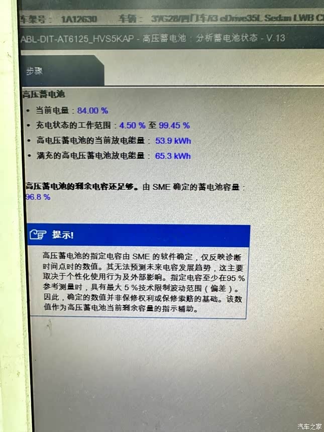 如图所示,目前电池损耗3.2%,按照70度去核算,也就是少了2.24度电,宝马出厂锁住了5度电左右,实际能使用的电量65.3度。所以即便是每次充到百分百,也不会过充,有一点请大家注意,我基本上没有放电低于10%。