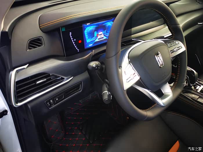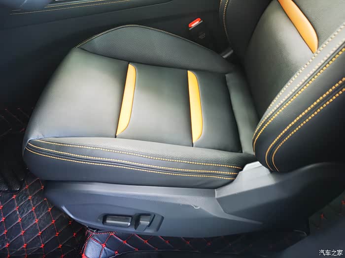 它的内饰用料不错,中控台上半部分都是软的。方向盘是皮的,座椅是皮的,与身体接触的门板部分也是皮的。这个价位的大部分合资车,整体内饰大都是的灰塑料。