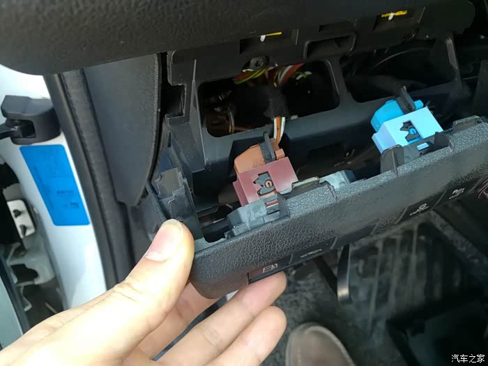 氛围灯只是开大灯小灯的时候才亮,不开不亮,想达到这个效果,就要接对线。我开灯观察了一下,油箱盖开关附近的按钮都可以。那就拆这里吧。