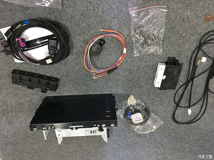 配件一览!有中控主机275D以及雷达的模块、单独的按键和扬声器等配件!糟糕,忘记把雷达的探头放进来,不过不要紧,下面会有补拍的照片的!