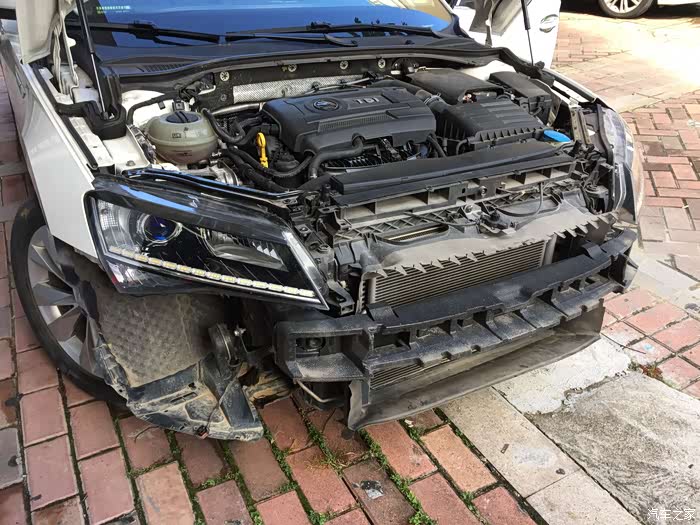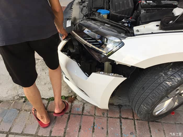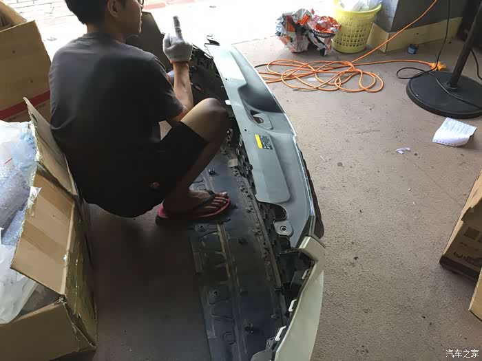 卸下前保险杠后的车头样子,坦荡荡的,什么都看见了!拆下来的保险杠是去哪里了呢?往下看是给您答案的!