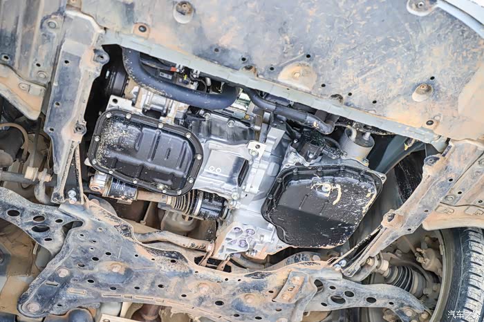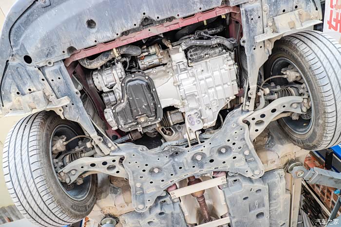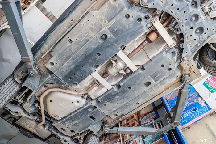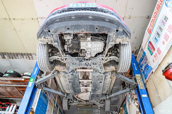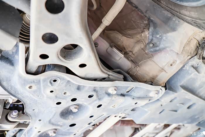这个是C-HR的底盘全貌,覆盖件相当好了,至少没有裸露的地方出来。覆盖件都是树脂材质,硬邦邦那种。