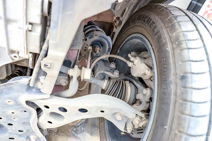 悬挂都是常规的铁质件,没有铝合金的。然后下摆臂是双层冲压件,球头可独立更换!