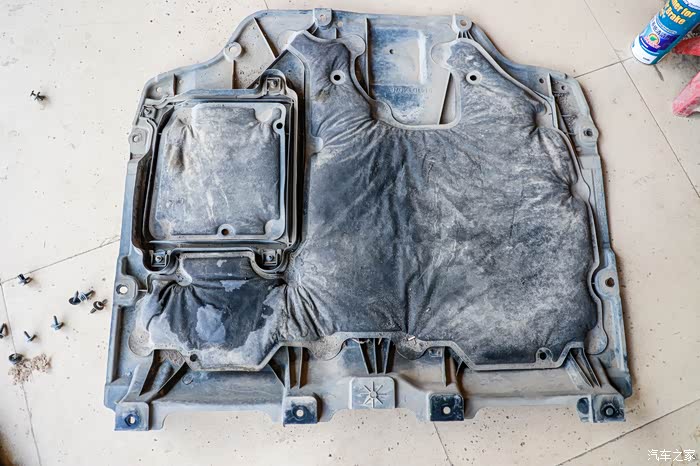 拆掉发动机舱下护板的样子。