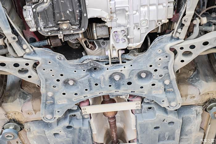 以前我说雷凌这个副车架算是半框式结构,因为延伸到前面的结构件太单薄细小了。但是现在再回头看,我觉得干脆是非全框式算了。老一代那种才算!