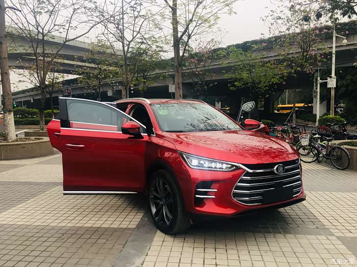 没错还没上牌就来写帖的也是难得一见,哈哈哈, 今天比亚迪店让我过来先验下车,想着先拍些照片给你们看看,好歹也在论坛泡了快半年,平常你们那些旅游的真是让人羡慕。要说起为啥买唐得从为啥广州要开四停四提起,摇了1年没摇到牌,只想骂街,但有些同事摇了2年,瞬间心里平衡了些,为啥不拍牌呢,想的是哪天限单双号不是更黑仔。一直在关注新能源车,比亚迪做电池厂发展起来的,电池方面还是比较放心,质保时间也够长。车型方面也一直比较喜欢SUV款,空间的,视野好,像唐DM这种不会开到没电就要去充电,这点让人比较放心,要说有没有对比过其他车型,有看过WEY P8感觉不值那个价,后面就没怎么关注了。话不多说上图。图片都是加了滤镜,红色会深一些。