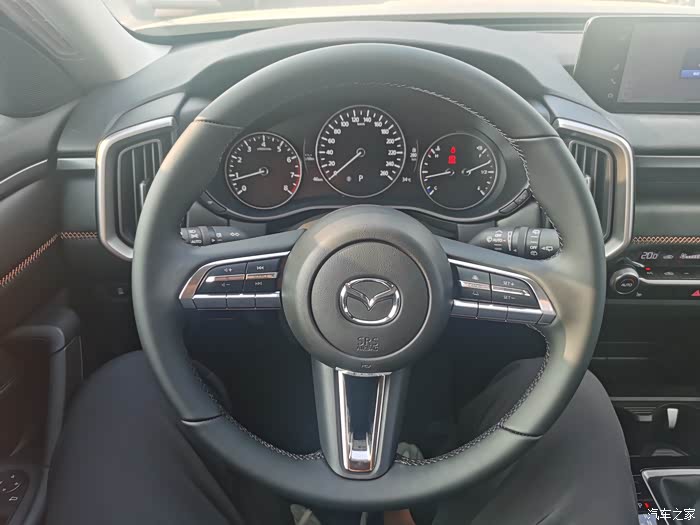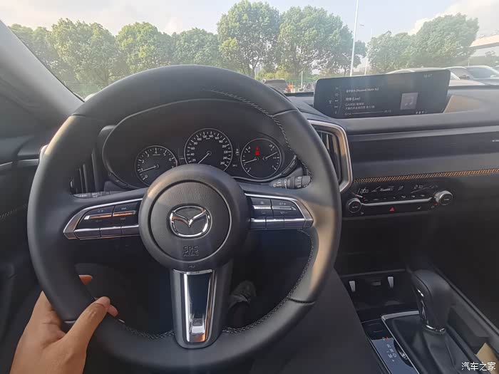都说马自达的内饰像是上个世纪的产物,说实话在跟现在的新能源车比确实是土气不少,但是如果你一旦接受这个设定,看习惯了就会觉得也没差多少,相比于千篇一律的大彩电,保留一些机械元素的内饰还是比较耐看的。屏幕比较扁长,像是一个放大手机给加长了,最大的问题就是看导航会难受些,不过也无所谓了,毕竟我相信很多人跟我一样,还是再用手机导航,这就说到了他另一个好处,就是屏幕前有一点点斜进去的凹陷,正好手机可以横着放上去,这样也不用装手机支架,反正用起来挺方便的。