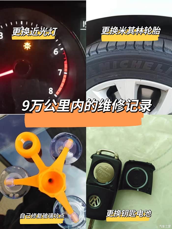 第五次维修:大约在7万公里左右,更换了4条米其林浩悦的轮胎,买三条送1条