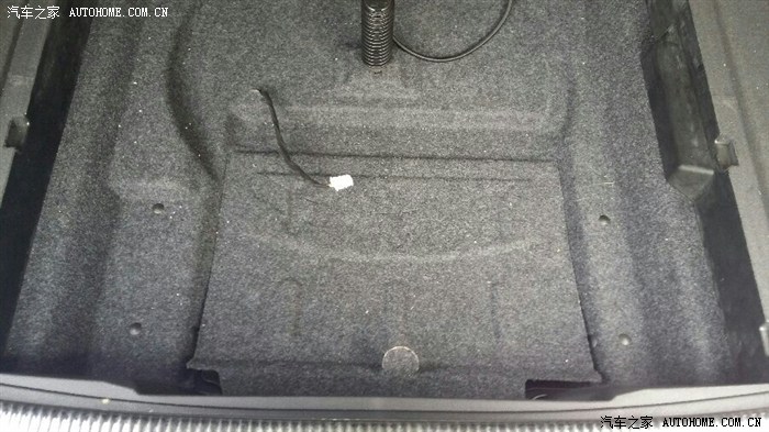 下面开始安装,先给车台接电,车台发射功率很大,所以必须接到电瓶上。Q5的电瓶在后备箱备胎下面。找到电瓶首先掀掉后备箱第一层盖板,露出备胎。拔下备胎上的白色低音炮电源。拧下中间的大塑料螺丝,就可以把备胎搬出来了。