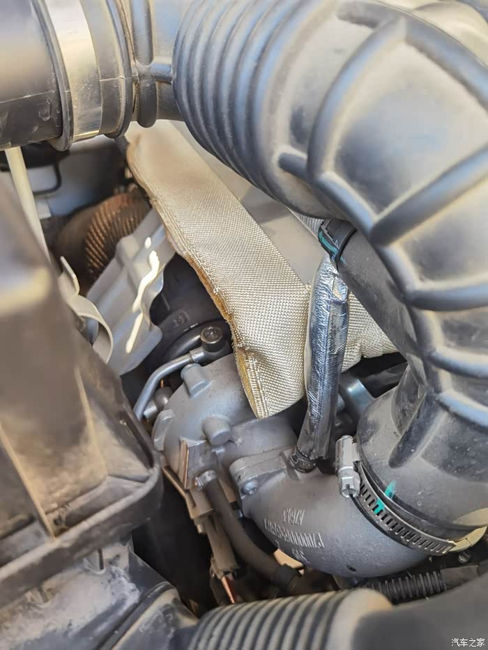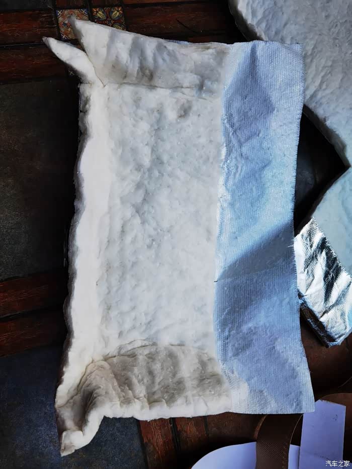 车友大神级做的隔热,他是用的涡轮增压包布,盖在了隔热板的顶上。