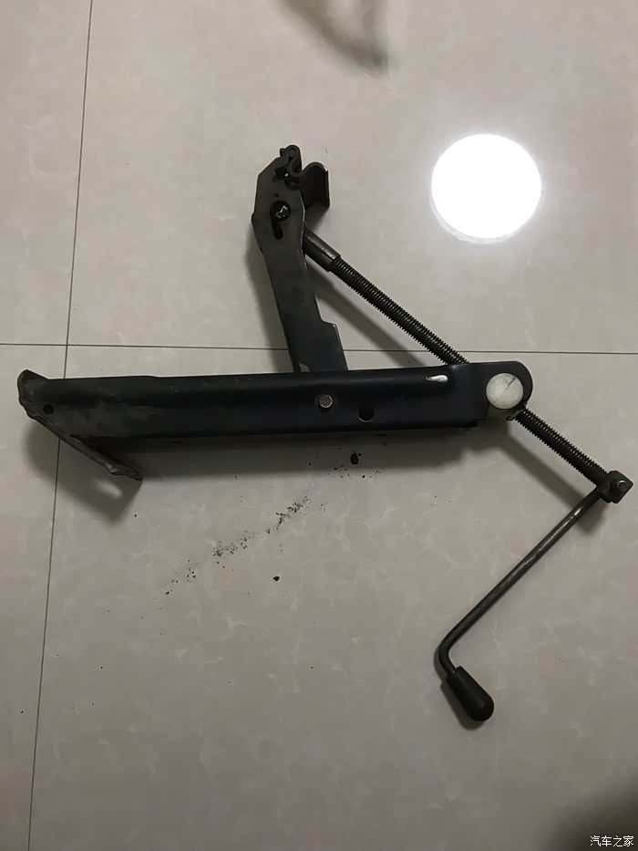 二十多年前手摇式的千斤顶,比原车的好用太多,偶尔跑长途会带在车上。只要体力好,十几秒就能将车顶起来