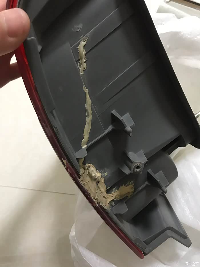 这师傅手艺可以说很好了,起码没用哥俩好,为了防止裂开的尾灯进灰层,直接用腻子煳。