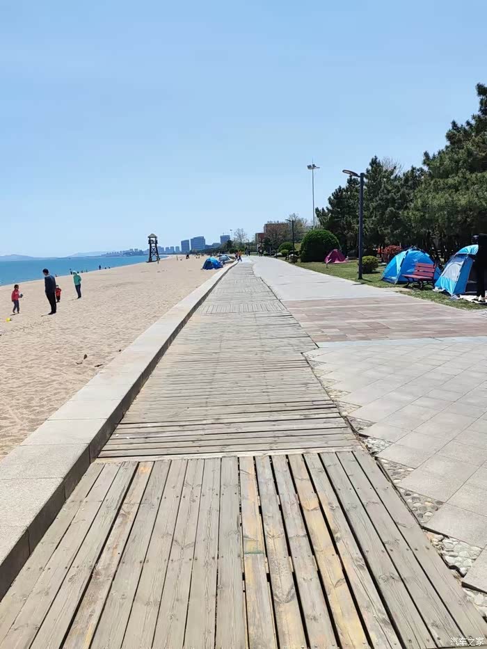 沙滩干净,海水湛蓝,海风轻拂,好多游客都在这搭帐篷露营呢。
