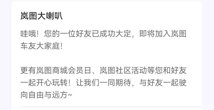 知音凭借其出色的性能、舒适的驾乘体验和丰富的智能配置,成功的把试驾的意向客户转为大定客户,几天后,这里将成为你的专属,姐姐!欢迎加入岚图大家庭!