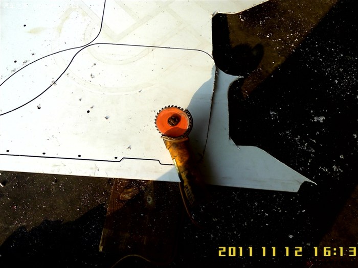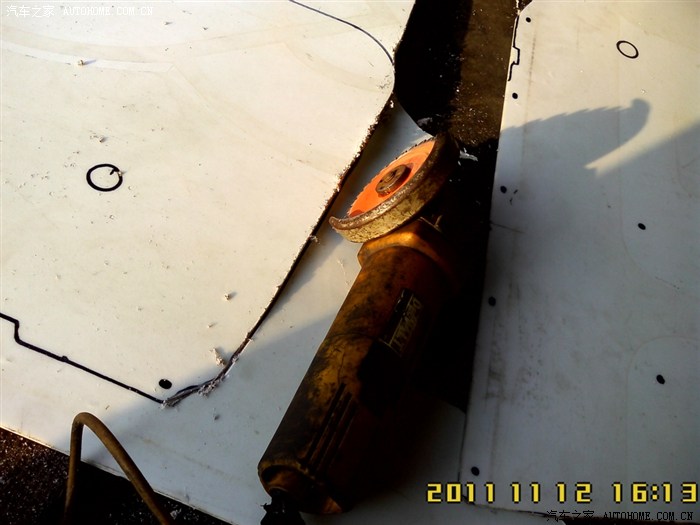 我是用手砂轮机锯的,这种板质量太好了,相当难锯,好像是联通广告用的,还有广告字。