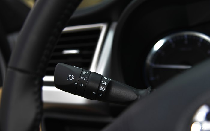 方向盘左上方有一把转向信号灯控制杆: