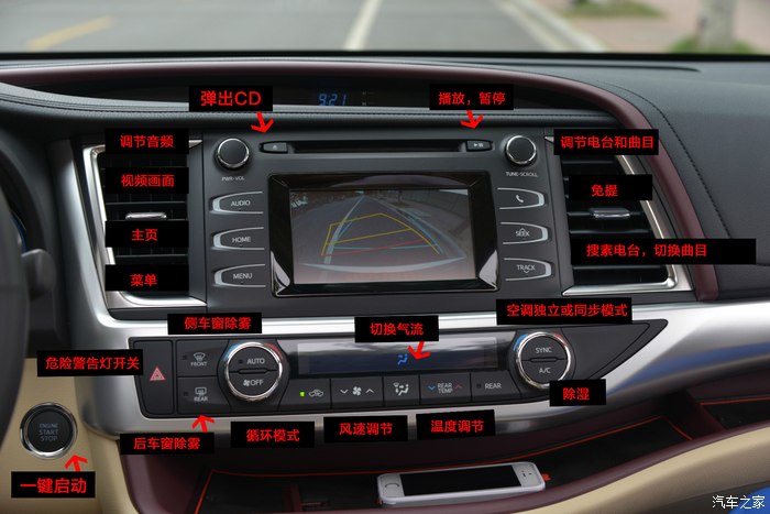 刚刚拿到全新汉兰达,很多按键不是太懂,这几天在翻查车辆使用说明书,看的有点累,不过还是想要和你们一起,分享下我爱车车型2.0T豪华版本所知道按键功能的解说,如果遇到解释的不对的,求大神赐教!