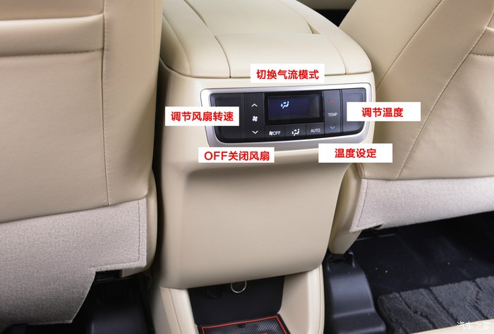 圆圈按钮:温度调节,顺时针是暖气,逆时针是冷气,当旋转到【 MAX A/C 】位置可以速度制冷。