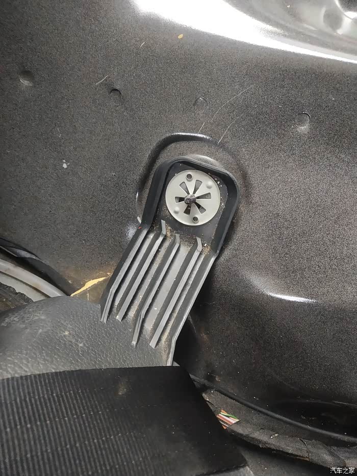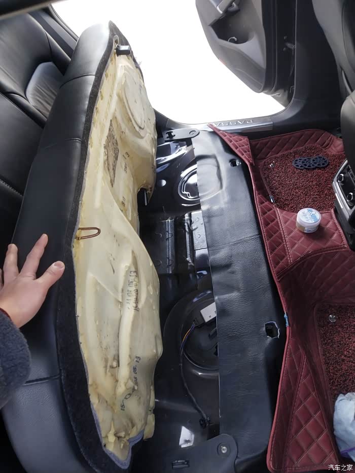 1.先找到后座底垫与车底地板之间的缝,找到左右两处垫与车底接合卡扣的所在位置