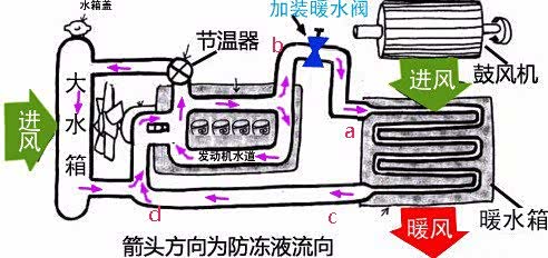 具体的改装就是,把发动机的,热水口出口,和发动机的,进水口出口,这两个口用管把它连接起来,这个循环,也就是发动机的分支循环,它是经过空调系统里面的,也就是,这个循环,我不让他在空调系统里面循环流动水,空调系统我不需要暖气了,我把它废掉,别人的改装方法就是,在这个线路上加一个暖水阀,但是其实空调系统里面还是有非常热的热水干扰冷气的输送,我干脆直接把那个分支循环短路,也就是,用原来的一根,进水口或者出水口的一根管子,把发动机的,热水出口和回水口这个小循环直接连接起来,这样热水还可以循环流动,不必加装暖水阀,