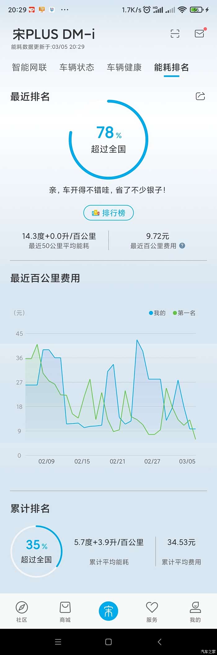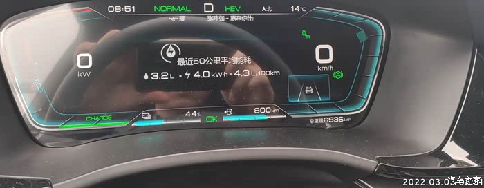 真实车主 宋plus DMI两驱顶配 3月初日常上下班油耗