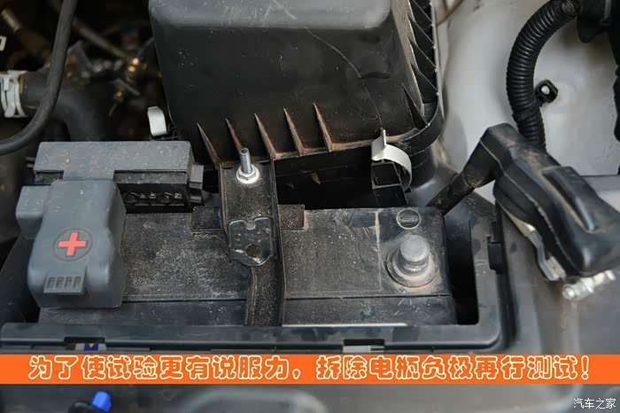 为了测试电压在电瓶完全失效情况下的启动能力,决定再脱开电瓶负极进行测试,注意拆下的负极不要与正极发生接触,直流电短路非常危险