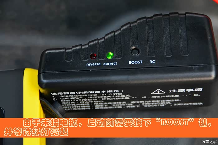 一是说明书并没有明确的说明没连接电瓶前按下“BOOST”键会如何;