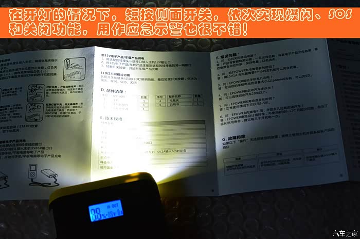 再试试爆闪功能和SOS功能,觉得用作警示灯,效果应该不错