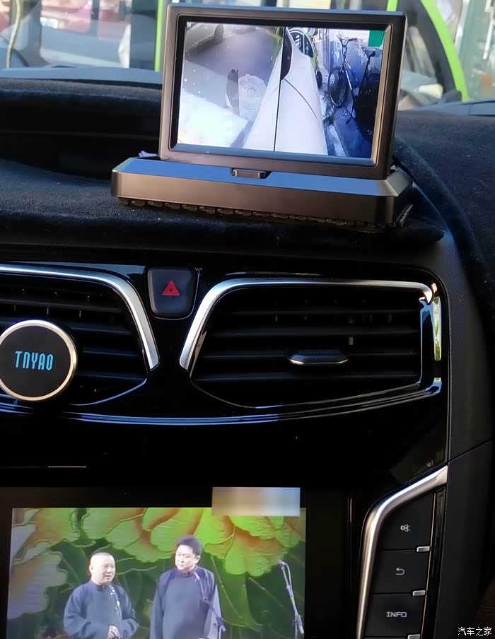 正式安装时没有合适的、能够安装在 V70 车头部位的摄像头,所以只显示了左右二侧的画面。左右二侧的画面还没有调到对称。