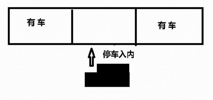 郊区的房子有车库,但城里房子的楼下很不容易的挤出一块停车的地方,因为车体宽大每次停放都要费不少力气。如图: