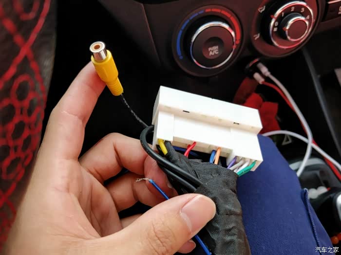 然后拆开 上图脚垫下的塑料卡扣。后门,前门,就来到了方向盘这里。然后接倒车灯电源。钥匙拧到on,别打火,挂倒挡,后面亮灯,为了确认一下,拿万用表量一下,有12v的就是倒车灯。 然后破皮,接上。