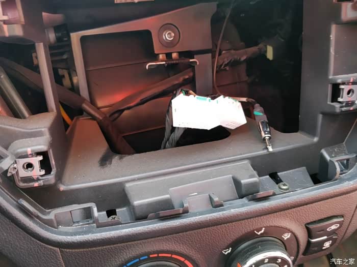 这里有点要说的就是,拆气囊的时候左右两颗T40螺丝有点紧,可能拿手拧不动,带个老虎钳子拧,就容易下来了。(看论坛里有把螺丝拧折的,我使的劲不小,没折,感叹运气比较好)。 第一天的工作到这了。就该苦逼的搬砖去了,大屏拆下来了,没上紧,因为第二天还得弄倒车影像。