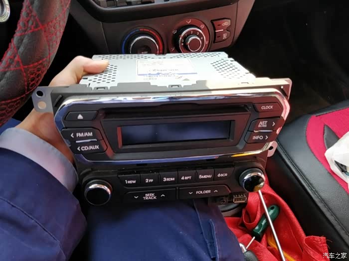 第一天中午我先拆的原来的CD,试了试大屏,顺便装上多红能方向盘。拆CD就不多说了,撬面板的功夫就是。看了论坛里好多大佬的帖子,只能说 班门弄斧了。