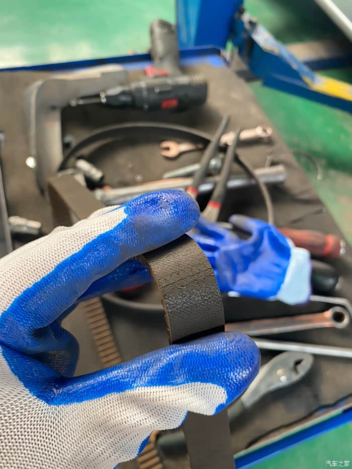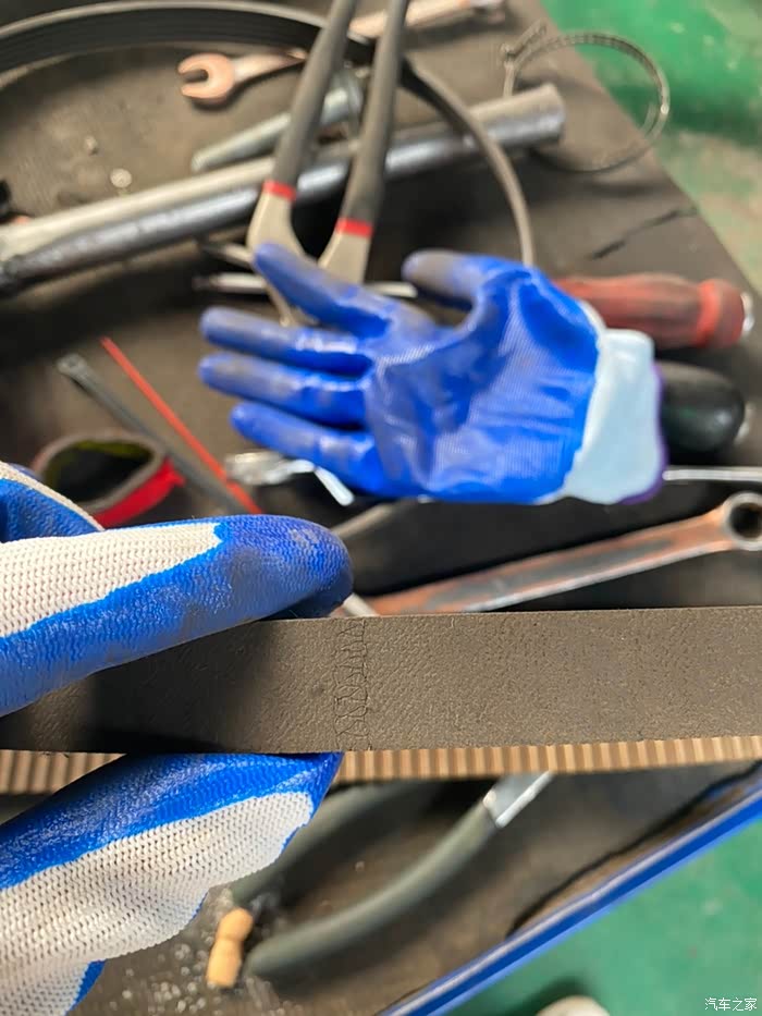 原车的皮带,品牌,不了解。细看,有轻微裂纹。