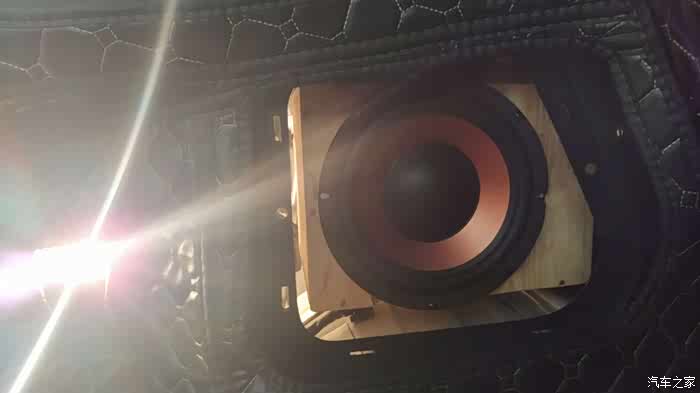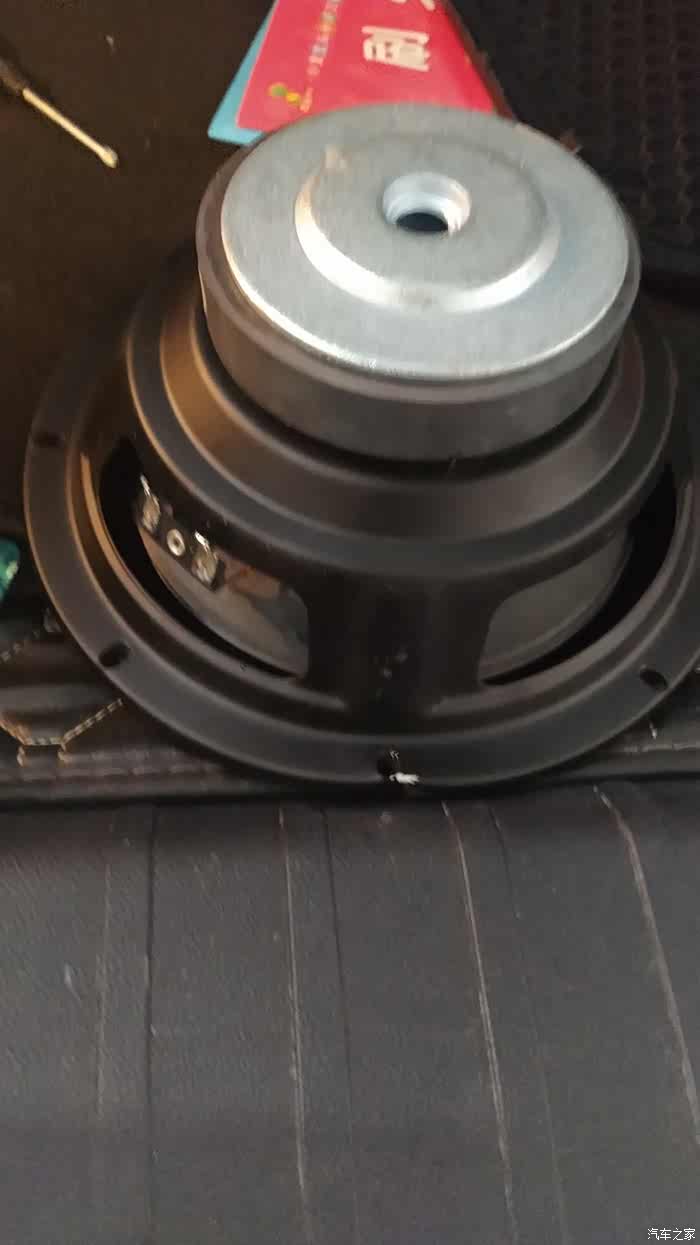 装进去的效果,这个喇叭就是淘宝40元购买的8寸低音喇叭了,音量偏低,频率解析力和惠威是完全一个天上一个地下,这就是山寨货和主流品牌的差异,但是够用了,不缺钱的车友,可以直接购买惠威的8寸低音喇叭!