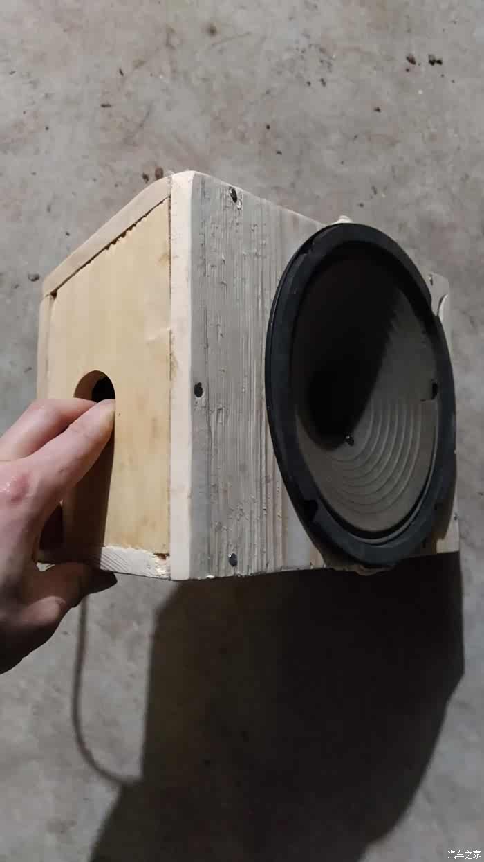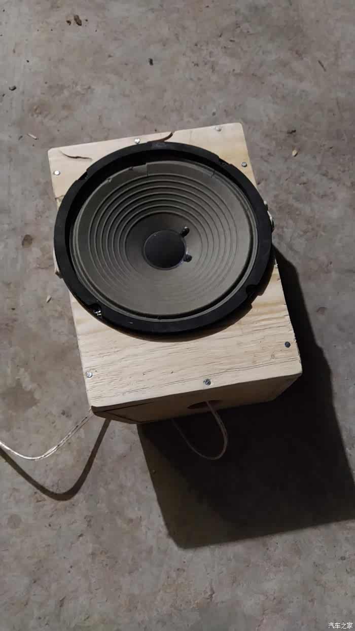 木头做的箱体,直接固定在后备箱低音炮原厂的位置,上面装的喇叭是从我的电吉他音响拆下来的,下面有图上的40元喇叭效果