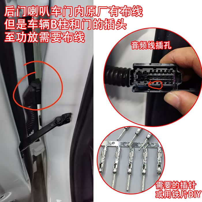 1)后排座喇叭车门上是有布线的,B柱到功放是没有线的,需要自己布线