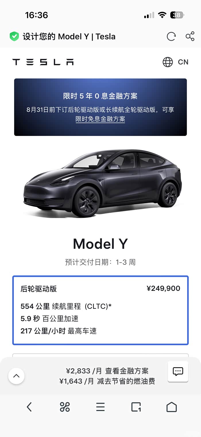 为什么选特斯拉 因为其他电动车 车企都拿他来当标杆 那我不如直接买标杆 五年免息 本来想等新Y的 太漫长了