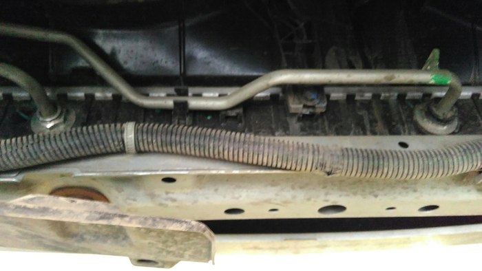 找到一进一出两根油管(这两根油管都是连接水箱,这也间接给大家解释了一下为什么自动变速箱在冬天会有冷保护的原因)