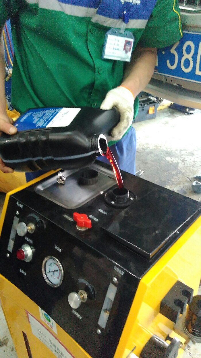 开始往换油机里边加注新油,我买了3桶12升,最后由于操作换油机的工人不熟练,导致我又去买了一桶