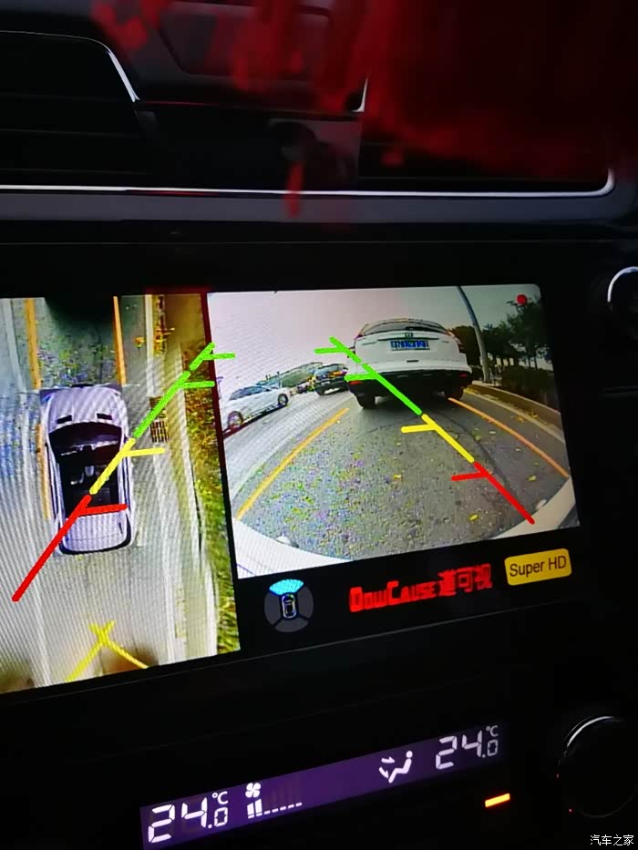 全车影像调节后很清晰,以后开车就安全了,能看到车边物体的距离。但是原车倒车影像的倒车方位线条无法去除。这个去不掉老板没有提前告知,这个是唯一遗憾。慢慢习惯吧,最后还是感谢师傅们的认真布线。