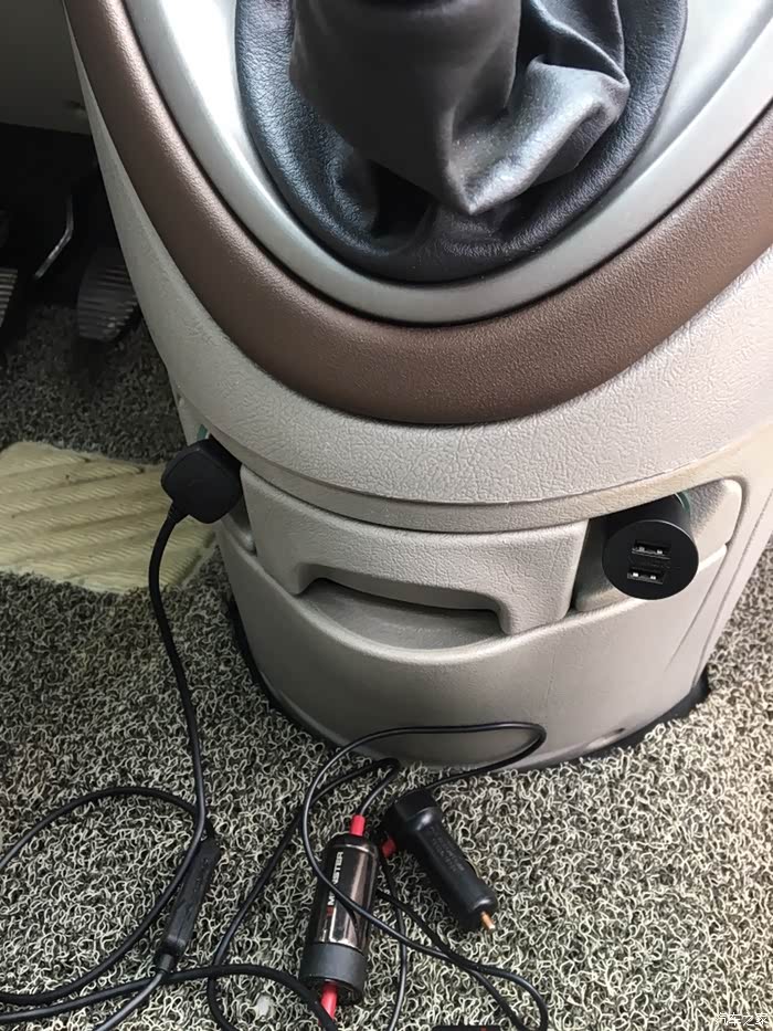 左边点烟器口,右边是我自己加装的,从报废场毕加索上拆了一个原装点烟口安装的