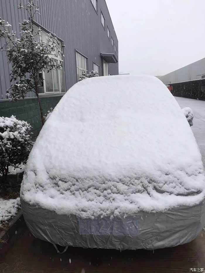回家后上牌后车衣罩起停放在朋友工厂,一辆小雪给它披上银妆