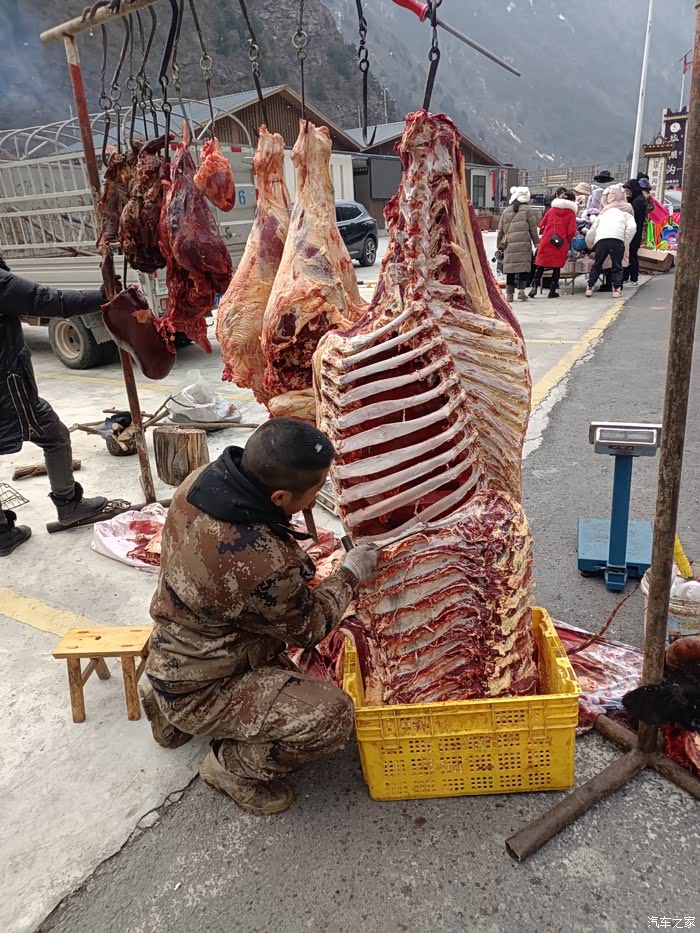 到汶川就没高速了,需要走213国道,顺便去汶川解决午饭问题,结果大年初一很多店没开门,找了个小店吃了碗牛杂汤配饼,味道还可以。