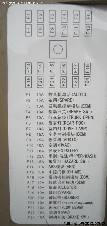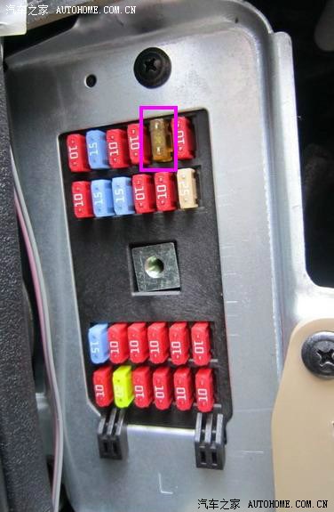 1.由于电是从后备箱开启按钮上取的,所以要先把后备箱线路的保险丝由10A换成20A,找到车内保险盒