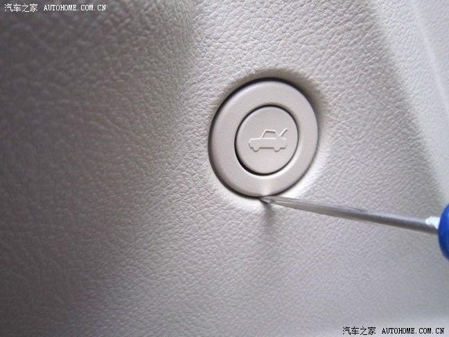 5.用一字螺丝刀撬开后备箱按钮,并拔出来